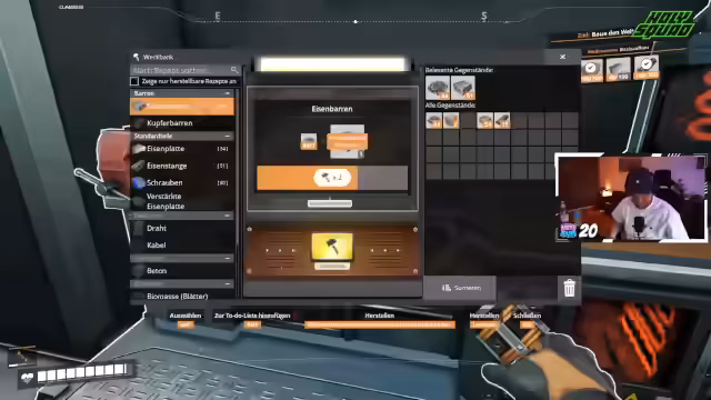 00:26:36Mit Mario zusammen errichtet der Streamer seine Basis. Sie platzieren den ersten Hub und diskutieren die optimale Positionierung. Der Streamer stellt seine unerfahrenen Fähigkeiten im Spiel vor, während Mario erfahrener zu sein scheint. Sie beginnen mit der Ressourcengewinnung und dem Craften von Eisenplatten.