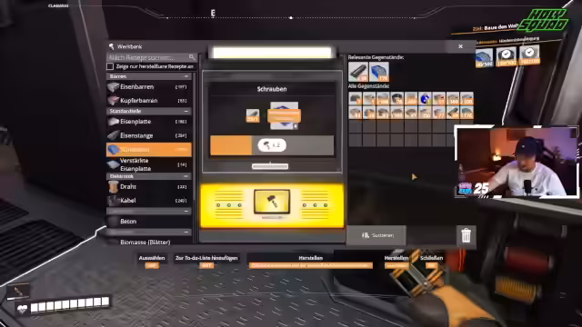 01:08:53Es werden Notwendigkeit von Beton für Bauprojekte diskutiert und die Herausforderung, Kalkstein im Spiel zu finden. Der Streamer lernt im Early Access, dass Factorio eine 2D-Ansicht mit Pixelgrafik hat, und erklärt, dass der Ping-Mechanismus davon abhängt, wie weit entfernt Ressourcen sind. Es folgt eine Diskussion über die Automatisierung von Betonsteinen mit Minern, wobei Unsicherheit darüber besteht, ob einzelne Steine oder Adern abgebaut werden können. Der Plan wird geschmiedet, mobilen Miner für Kalkstein einzusetzen und eine Automatisierung zu starten.