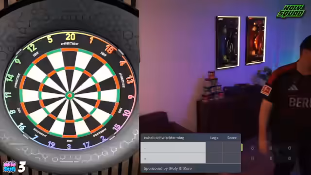 00:07:13Der Streamer kündigt Verlosungen für sein einmonatiges altes Dartboard sowie das umgebende Surround an, die er nicht mehr benötigt, da er ein neues Board zum Testen erhalten hat. Er dankt der Firma Precise für das gesponserte Equipment und Bela für die Vermittlung der Partnerschaft. Zudem erwähnt er einen gespendeten Zahlenring und erklärt, dass die Verlosungen am Abend erfolgen werden. Er betont, dass das alte Board in gutem Zustand ist, aber Einschläge aufweist.
