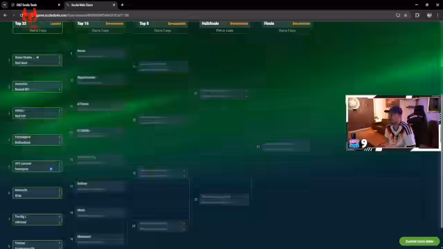 00:09:53Ein Below-50 Turnier startet. Der Gegner 'Caravan Johnny' zieht durch und ist der nächste Gegner des Streamers. Im Gespräch über den Dart-Technik wirft der Streamer ein Problem mit seiner Grifftechnik auf, die zu schlechten Würfen führt, wenn er die Pfeile falsch greift. Er erläutert, dass er in solchen Momenten diszipliniert neu greifen oder einen Schritt zurück gehen muss, um zu korrigieren. Dies unterstreicht die Bedeutung der Körperhaltung und der Handposition im Dart.