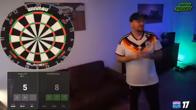 00:07:12Der Stream beginnt mit Begrüßungen zum Neuen Jahr und einer Diskussion über verschiedene Dart-Trikots. Der Streamer zeigt sein neues Trikot und erwähnt ein rosanes Trikot, das er sich für zukünftige Anläse geholt hat. Es folgt eine allgemeine Unterhaltung über Dart-Themen wie Trikot-Designs und World-Cup-Pläne.