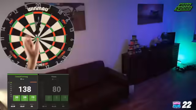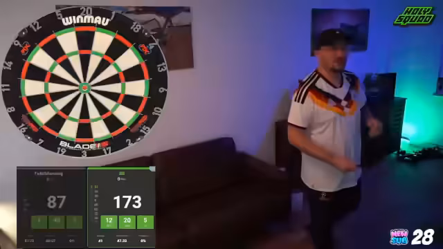 00:19:28Das Turnier beginnt. Der Streamer wechselt zu einem Probespiel mit einem Zuschauer, um das Streaming-Setup zu testen. Nach erfolgreichen Einstellungen starten die ersten Spiele. Es werden anfängliche Schwierigkeiten beim Werfen erwähnt, woraufhin der Streamer seine Flights ändert. Die Anfangsphase ist vom Lernen geprägt, da er sich nach einer Pause langsam wieder an die Würfe gewöhnt.