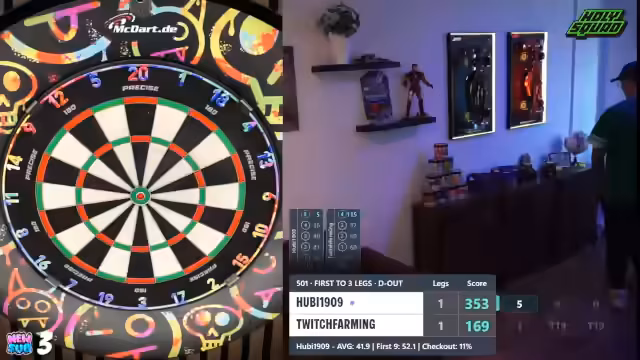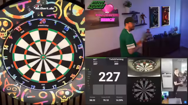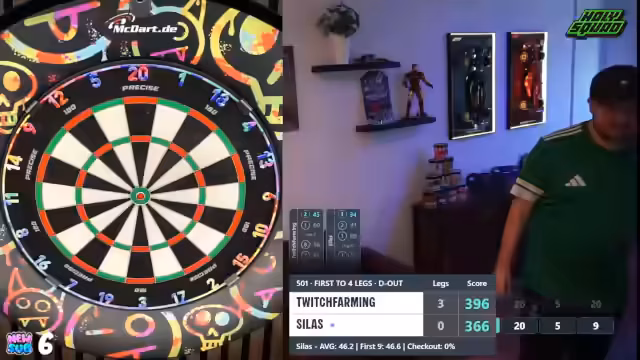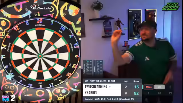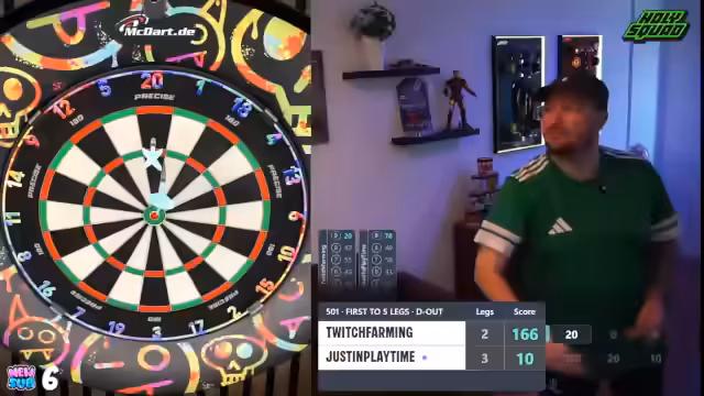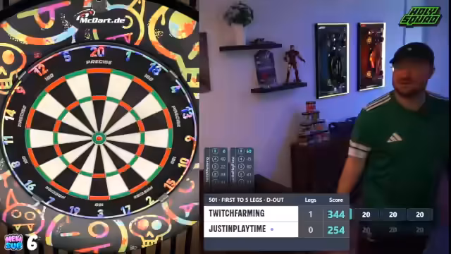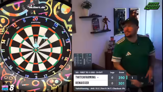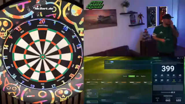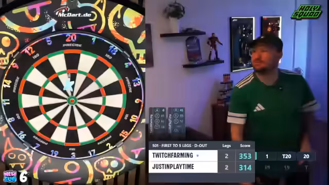 00:01:35Der Stream beginnt mit dem direkten Einstieg in ein Dartturnier. Der Streamer begrüßt den Chat berichtet vom Urlaub im Spreewald und den damit verbundenen Internetproblemen. Es geht sofort ins Geschehen, eine Runde wird schnell gestartet und das Spiel läuft direkt an. Der Streamer gibt einen Überblick über das Turnierformat und die aktuelle Spielsituation, die erste Partie steht aus. Chatinteraktionen werden eingestreut, um die Stimmung zu halten.