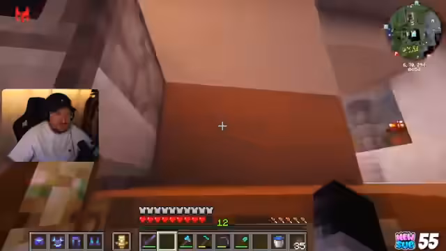 01:12:04Der Streamer kämpft mit aggressiven Eisengolems, die ihn wiederholt angreifen und seine Ausrüstung zerstören. Er äußert seinen Frust über die Schwierigkeiten, sein Inventar zurückzubekommen und die hartnäckigen Golems abzuwehren. Ein weiteres Problem stellt ein Villager dar, der sich in Sonjs Haus eingenistet und einen Beruf angenommen hat, was zu Verwirrung und Ärger führt, da dieser sich unkontrolliert verhält. Die Situation eskaliert, als der Villager dem Streamer auf den Hinterkopf schlägt, was die ohnehin schon chaotische Lage weiter verschärft. Die Versuche, die Villager zu kontrollieren und in ihre Gehege zu bringen, erweisen sich als extrem zeitaufwendig und frustrierend, was den Streamer an den Rand eines 'Ragequits' bringt.