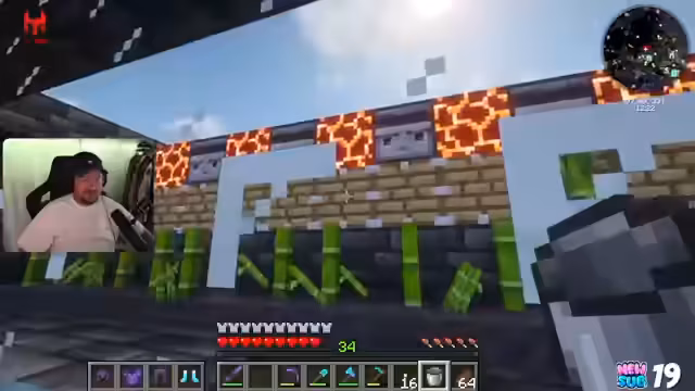 00:12:00Der Streamer berichtet, dass er in der letzten Zeit viel Zeit mit seinen Kindern in Minecraft verbracht hat, und zeigt die Errungenschaften aus dieser Zeit. Er präsentiert sein neu erweitertes Anwesen, eine Kuhfarm, die Kühe vermehrt und das Fleisch per Trichter direkt in sein Lagerhaus befördert. Ebenso werden eine Bambus- und eine Steinfarm gezeigt, die automatisiert Ressourcen liefern. Zudem wird ein Dorf mit einem Bewohner namens Hannes vorgestellt, der als landwirtschaftlicher Arbeiter dient.