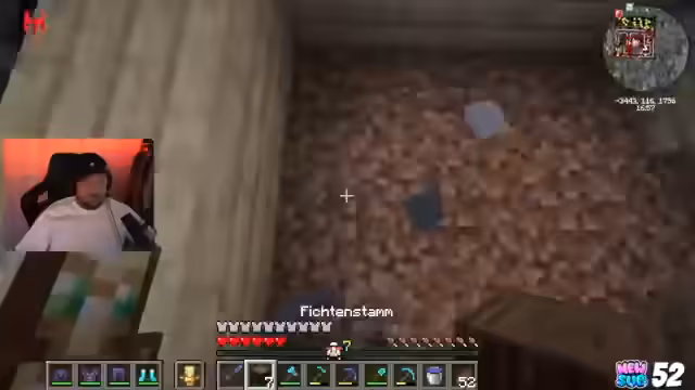 01:49:48Der Streamer und Mario erkunden verschiedene Farmen, darunter eine Raid-Farm von Luke, um Totems zu finden. Sie stellen fest, dass Luke bereits viele Strukturen und Farmen gebaut hat, was den Streamer dazu anregt, seine eigenen Projekte zu starten, anstatt nur die vorhandenen zu nutzen. Er äußert den Wunsch, Dinge selbst zu bauen, um den Lernprozess zu erleben. Ein weiteres Ziel ist die Suche nach einer Mansion, die jedoch 3700 Blöcke entfernt liegt. Trotz der weiten Entfernung und der möglichen Gefahr durch Gegner in der Mansion, beschließt der Streamer, sich auf den Weg zu machen. Er überlegt, wie man die Koordinaten speichern kann, ohne zu cheaten, und reflektiert über die Herausforderungen des Reisens über weite Strecken in Minecraft ohne Teleportation. Die Diskussion über das gemeinsame Spielen und die unterschiedlichen Herangehensweisen an das Spiel (alles selbst bauen vs. vorhandene Strukturen nutzen) ist ein wiederkehrendes Thema.