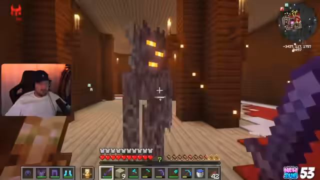 00:38:49Der Bau einer neuen Farm erweist sich als kompliziert, insbesondere der Transport und das Einsperren der Villager. Die Versuche, die Villager in die dafür vorgesehenen Bereiche zu locken, führen zu humorvollen, aber auch frustrierenden Momenten. Der Streamer kämpft mit entlaufenen Villagern, die sich nicht so verhalten, wie er es sich vorstellt, und muss improvisieren, um sie in die Farm zu bekommen. Auch ein Eisengolem sorgt für Schwierigkeiten. Trotz der Rückschläge wird die Farm schrittweise aufgebaut, wobei der Streamer auf die Hilfe und die Tipps der Community angewiesen ist, um die besten Strategien für den Villager-Transport und die Farmgestaltung zu finden.