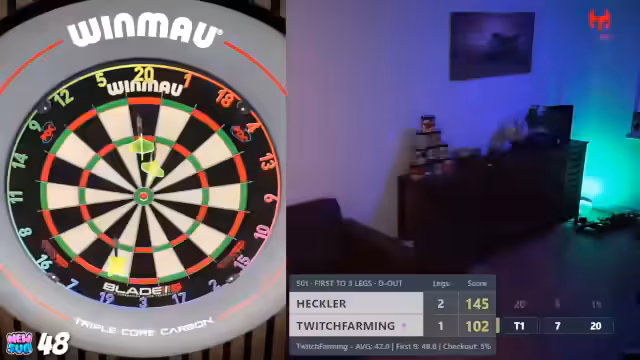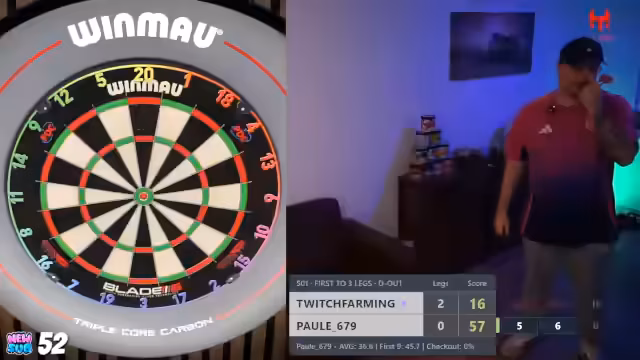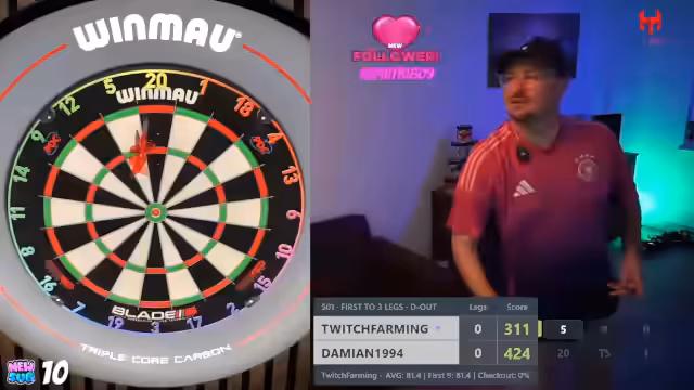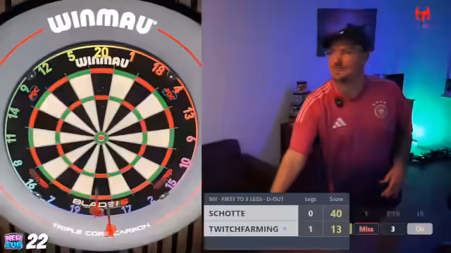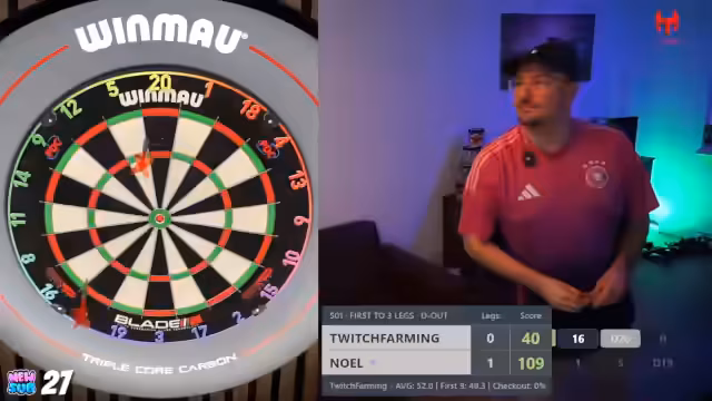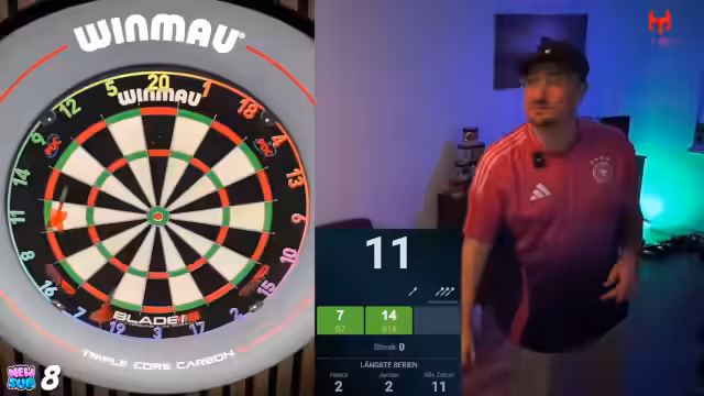 00:44:21Der Streamer beendet das zweite Spiel des Turniers mit einem starken Finish. Nachdem sein Gegner eine deutliche Führung hatte, holt der Streamer auf und gewinnt das Spiel letztendlich. Er wirft dabei eine Serie von hohen Scores, darunter eine 180, und zeigt so seine stabilen Nerven. Der Sieg bestätigt die positive erste Eindruck der neuen Darts, auch wenn das Niveau im Stream nicht ganz dem von gestern entspricht.