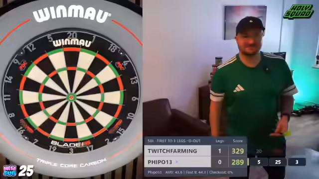 00:15:11Das Turnier beginnt und der Streamer stößt auf Probleme mit der Turnierplattform Skoya, wie etwa Verzögerungen bei Gegnern. Es werden verschiedene Gegner und deren Statistiken wie Average und Checkout-Rate im Chat analysiert. Es wird darüber diskutiert, ob 9-Dart-Würfe auf der Plattform gezählt werden sollten und wie man in Mietwohnungen optimalerweise darten kann, ohne Schäden zu verursachen.