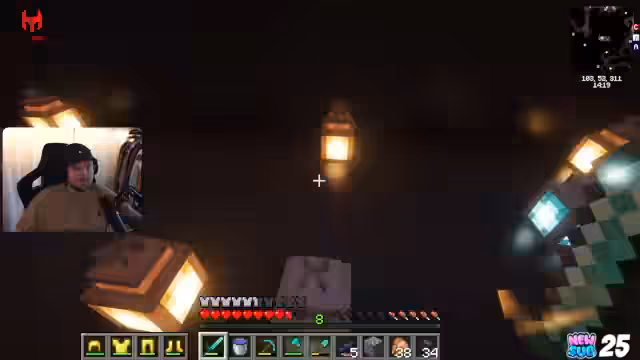 01:13:28Nach dem visuellen Upgrade widmet sich der Streamer wieder dem Gameplay und konzentriert sich intensiv auf das Diamanten-Farming. Er erkundet eine riesige Höle, die durch den Shader besonders beeindruckend wirkt. Die Jagd auf Diamantenblöcke gestaltet sich jedoch gefährlich, da er auf aggressive Monster wie Spinnen und Silberfische trifft. Es wird eine zufällige Dia-Vermehrung und die Notwendigkeit von Bauten zum Schutz vor Monstern thematisiert.