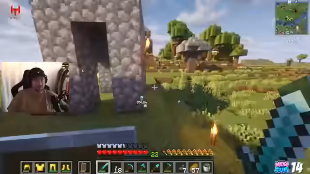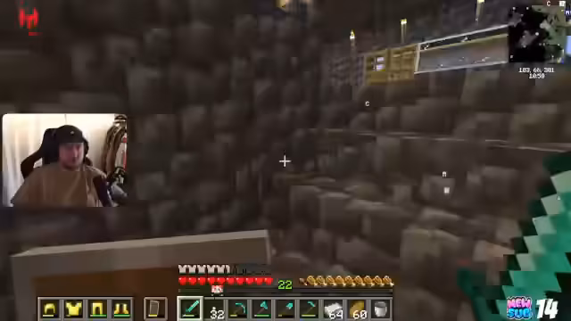 00:10:20Nach einem technischen Intro startet der Streamer direkt ins Minecraft-Spiel und ist voller Begeisterung. Er zeigt sein Häuschen und seine Lava-Farm. Im Mittelpunkt des Gameplays stehen Bautätigkeiten, darunter das Anlegen eines großen Raumes direkt unter seinem Haus und der Beginn der Organisation von Truhen. Der Streamer ist offen für Tipps von erfahrenen Spielern und diskutiert über die Effektivität beim Abbau von Ressourcen wie Diamanten und Eisen.
