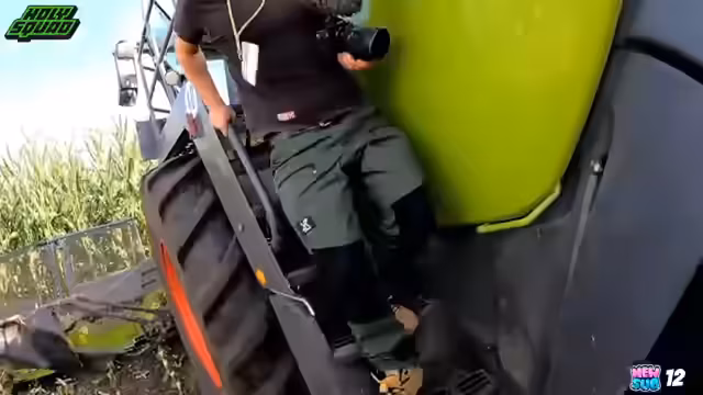 00:41:15Nachdem der Streamer und sein Begleiter die Kabine und die Lenkung ausgiebig getestet hatten, stiegen sie in einen Claas Jaguar 1200 mit einem 10,50 Meter Orbis-Vorsatzgerät ein. Während der Fahrt wurde die Leistungsfähigkeit und das außergewöhnlich leise Betriebsgeräusch der Maschine hervorgehoben. Die Maschine wurde im Vollautomatikmodus mit Auto Performance und GPS-Lenkung betrieben. Der Fahrer zeigte, wie das System den Mais hydraulisch und zuverlässig in den Häcksler zieht und wie die Autopilot-Lenkung an Vorgewenden funktioniert.