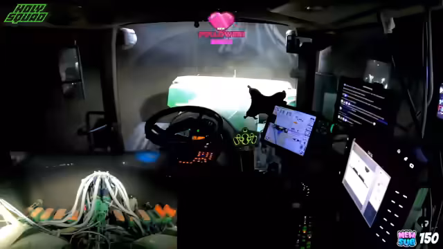 00:00:49Der Stream der Nachtschicht beginnt mit Begrüßungen im Chat und initialen technischen Problemen. Es dauert eine Weile, bis das Bild- und Tonsignal, insbesondere die hintere Kamera, ordnungsgemäß funktioniert. Streamer und Techniker Hannes arbeiten daran, die Aussetzer zu beheben und die Kamera zum Laufen zu bringen. Gleichzeitig wird das Team darauf eingewiesen, die Arbeiten auf dem Feld mit Section Control zu koordinieren, um eine präzise Aussaat zu gewährleisten.