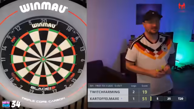 00:16:50Die Streamer tauschen sich über ihre Dart-Ausrüstung aus. Max erzählt von seinen neuen Darts und Flights und einem Board, das innerhalb kurzer Zeit kaputt ging. Kartoffel_Maxe erwähnt seine teureren Pfeile im Preisbereich von 80 bis 120 Euro, darunter das ProGrip Modell 01 und Espinel-Pfeile, die er verlosen wird. Es werden persönliche Themen wie Altersangaben und die Kritik an dem Tool Agrarheude, der Inhalte von ihrem Kanal klaut, angesprochen, was zu einer allgemeinen Ablehnung solcher Praktiken führt.