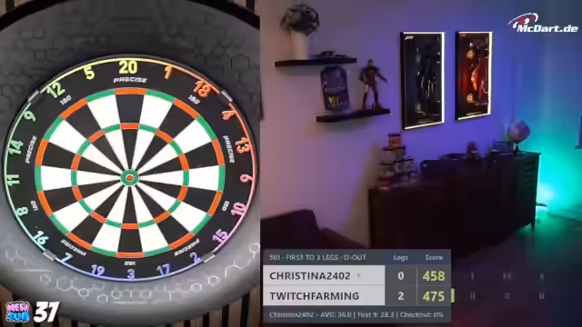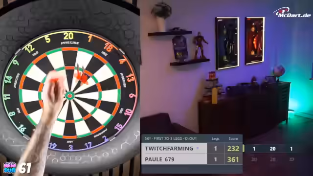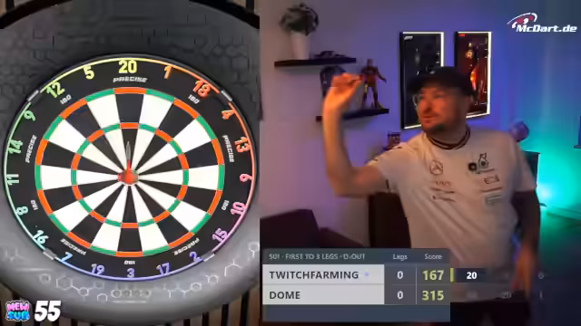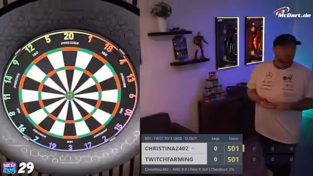 00:23:19Nachdem er seine Urlaubs- und Büroerlebnisse geschildert hat, wechselt der Streamer zum Thema Darts. Er kündigt sein persönliches Dart-Training für den Abend an, nachdem der Stream am Vortag komplett ausgefallen war. Zudem gibt er bekannt, am nächsten Tag an einem Charity-Dart-Turnier teilzunehmen, bei dem er selbst als einer der schlechtesten Spieler eingeschätzt wird. Er testet live die Dart-Wurftechnik, um die Funktionsfähigkeit seines Systems zu überprüfen, und interagiert dabei mit dem Chat.