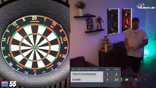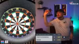 01:39:41Im laufenden Spiel diskutiert der Streamer verschiedene Strategien mit dem Chat. Nach einem verpassten Check-out überlegt er, ob es sinnvoll wäre, Double Out zu spielen. Er entscheidet sich dagegen, da es zu lange dauere. Er analysiert seine Würfe und denkt darüber nach, ob er auf Bull spielen soll, um mehr Sicherheit zu gewinnen, anstatt direkt auf die 20 zu werfen. Seine Entscheidung hängt vom Verhalten des Gegners ab.