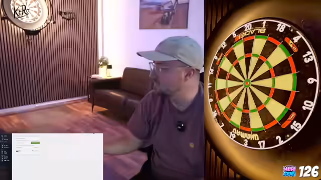 01:54:53Es werden technische Anpassungen wie das Zoomen des Stream-Bildes diskutiert. Parallel stellt der Streamer sein aktuelles Dart-Setup vor, darunter Schindler-G3-Darts, Red-Drain-Spitzen und Intermede-K-Flights. Er beschreibt die Handhabung seiner Pfeile und nennt seine Lieblingscheckout-Nummern wie Double 19, Double 8 und Double 20.