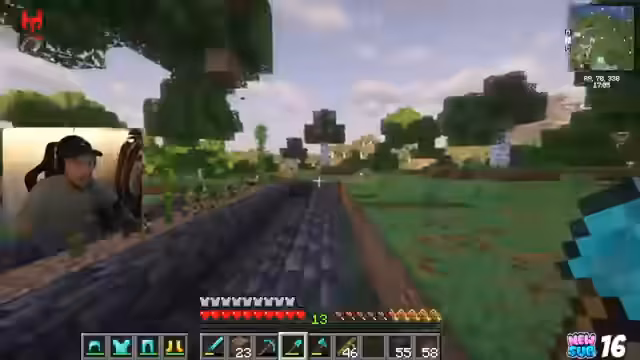 02:53:35Eine effizientere Cobblestone-Farm wird gebaut, bei der der Spieler einfach Linksklick gedrückt halten kann, um Steine abzubauen, die dann automatisch in Kisten fallen. Diese Farm nutzt vier Trichter und acht Kisten, um eine unbegrenzte Steinproduktion zu gewährleisten. Wasser wird auf Treppen platziert, und Lava fließt über die Trichter. Nach dem erfolgreichen Bau der Farm wird die Spitzhacke repariert und es wird über Verzauberungen gesprochen. Das Schwert soll Schärfe 5 und Reparatur (Mending) erhalten. Es wird festgestellt, dass Mending auch auf Rüstungsteile angewendet werden sollte, um deren Haltbarkeit zu erhöhen. Die Brustplatte wird mit Mending verzaubert. Es wird erwähnt, dass der Streamer einen PC von 'Hightech' verwendet, um Minecraft mit besseren Shadern und Grafiken zu spielen, und ein Rabattcode wird beworben.