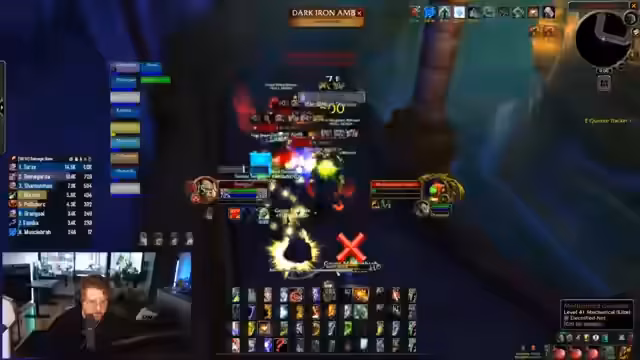 00:00:00Der Stream beginnt mit einem laufenden BRD-Run. Der Streamer ist als Heiler-Schamane unterwegs und zeigt seine neuen Fähigkeiten, darunter ein Instant-Heal durch 'Mates from Weapon', was im Chat für Begeisterung sorgt. Man diskutiert über Loot-Optionen und den Verlust von Set-Boni. Der Streamer plant, einen neuen Allianz-Charakter zu leveln, und man versucht, den Shadowforge-Schlüssel für den Dungeon zu beschaffen, wobei technische Probleme und Desyncs auftreten.