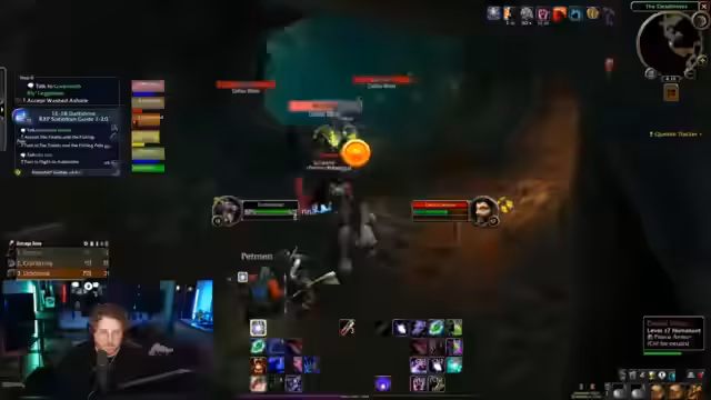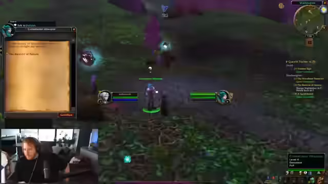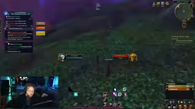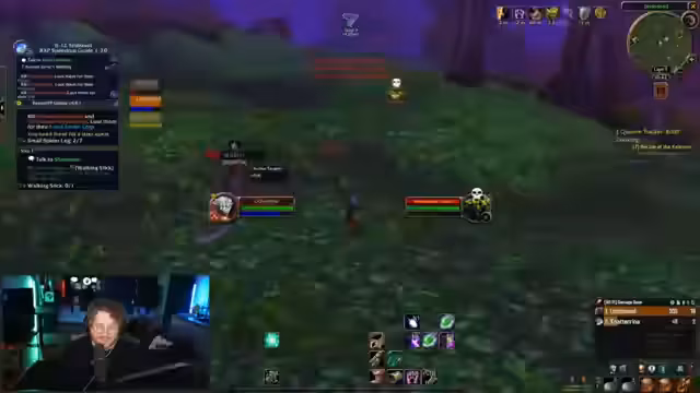 06:00:21Der Streamer befindet sich auf der Suche nach einem Baum für eine Rogue-Quest in D'Anassos, stellt aber fest, dass dieser sich stattdessen im Wald von Emily in Westfall befindet. Nachdem er den Mob gefunden hat, wird eine Quest abgeschlossen und Freie Erfahrungspunkte erhalten. Gemeinsam mit der Gruppe wird nun eine Eskort-Quest angenommen und eine gegnerische Rogue eliminiert. Die Gruppe koordiniert ihre Aktionen im Chat und folgt dem Ziel.