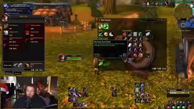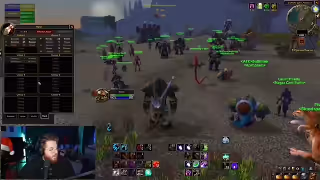 03:33:58Die Stream-Gruppe plant mehrere Raid-Läufe für die Allianz und Horde. Es werden Läufe auf spezielle Items wie den 'Smiley Hammer' durchgeführt, der auch bei Nichtbedarf gerollt werden kann, falls andere Gruppemitglieder ihn benötigen. Für den Farm von Runen und Quest-Objekten wird Ausdauer und Geduld betont, da man stamm bleiben muss, bis das gewünschte Item dropt. Das Addon 'Bagnon' wird zur Inventarverwaltung genutzt.