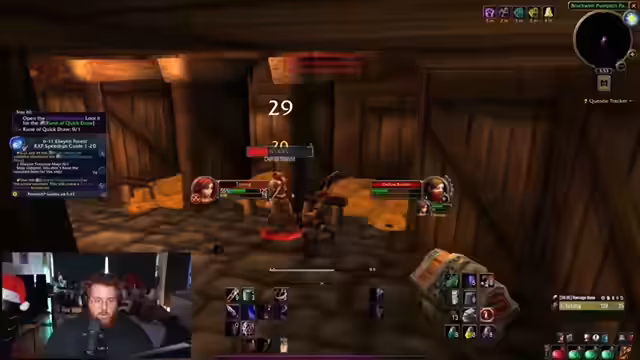 02:34:16Der Streamer führt spezifische Quests durch und gibt praktische Tipps. Er erwähnt eine wichtige Quest im Loch Modan, die einen Sprung auf eine Plattform erfordert, und erklärt eine Technik, um den 'Ground Clutter' in den Grafikeinstellungen auf null zu setzen, um Objekte wie Holz besser zu finden. Auch die Mechanik des 'Pickpocketings' zur Beschaffung von Kartenteilen wird demonstriert und ein Trick gezeigt, um durch eine Decke zu interagieren und den Schurken-Trainer zu erreichen.