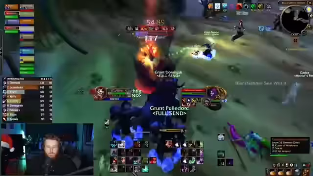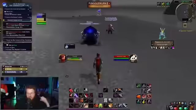 17:24:28Das Team ist gemeinsam in Darkshore unterwegs und farmt diverse Gegner, um Quest-Items und Ausrüstung zu sammeln. Dabei treten vermehrt Probleme auf, insbesondere der Hexer Gagamel agiert unkoordiniert, stirbt häufig und wird vom Rest des Teams als Klotz am Bein empfunden. Die Suche nach spezifischen Quest-Items, wie zum Beispiel einem verdächtigen Gegenstand namens "Cursed", gestaltet sich schwierig und führt zu Frustration.