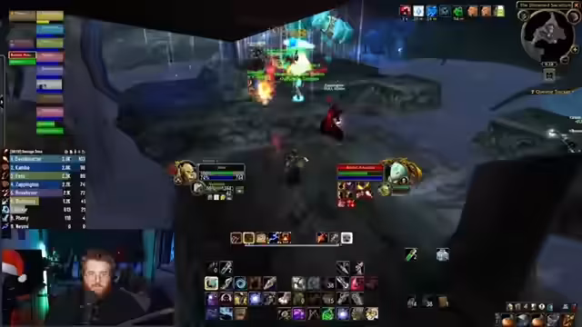 08:01:32Beim Start in den Raid gibt es technische Probleme mit dem Lockout-Skip. Die Allianza Spieler stehen vor der Instanz, was zu Verwirrung führt. Beim Pull des Bosses kommt es zu einem Wipe, weil jemand den Boss zu früh aktiviert hat. Streamer und Demigada diskutieren über den Schuldigen, während die Gruppe einen schnellen Neustart plant.