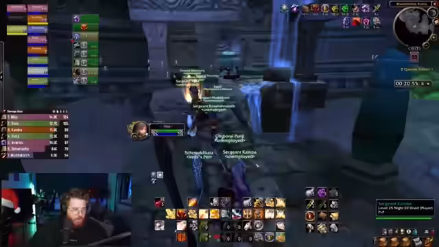 07:22:11Die Gilde sucht dringend einen Enchanter für das Raid-Gear, währenddessen wird Aiden mehrfach eingeladen, aber bleibt in seiner alten Gilde, was den Streamer sehr verärgert. Die Lösung wird gefunden, indem Aiden seinen Charakternamen ändern muss, um die Einladung zu ermöglichen. Gleichzeitig klärt man den Namen des Addons für die Quest-XP-Anzeige als Quest XP Tracker.
