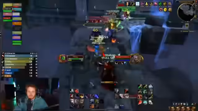 00:29:14Der Raid konfrontiert eine Welle von Monstern, die den Druiden-Tank vor Herausforderungen stellen. Wegen des limitierten 'Taunts'-Cooldowns wird eine 'Taunt-Kette' zwischen den Tanks und einem Paladin organisiert, um die Aggro zu halten. Der Streamer erwähnt die Wichtigkeit von Fähigkeiten wie 'Thunderclap' und 'Revenge'.