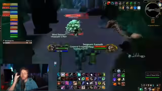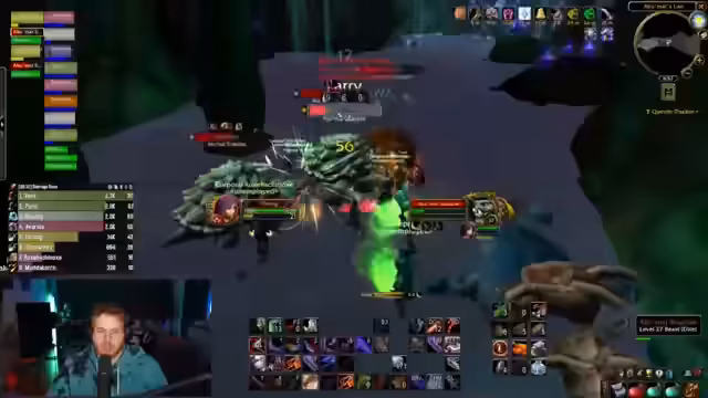 02:41:03Der Streamer und seine Gruppe bekämpfen den Boss des Grünen Drachenschwarms. Die Strategie erfordert präzises Timing: Spieler müssen ab einem bestimmten Stack-Zähler abstacken, um eine gefährliche Schattenphase mit Adds zu verhindern. Alle Schadensverursacher werden angewiesen, ihre AoE-Fähigkeiten gezielt auf die Adds zu setzen. Während des Kampfes gibt es Turbulenzen, als ein Spieler versehentlich stirbt, aber die Gruppe den Boss letztendlich besiegt und wertvollen Loot, darunter ein episches Schwert, erhält.