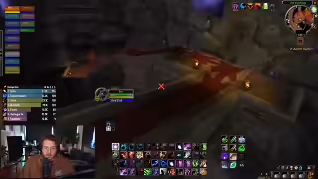 00:51:35Der Stream beginnt mit der Koordination des Bosskampfes gegen einen Gnome namens Reganon. Es gibt klare Anweisungen, wer den Boss wann nehmen soll, basierend auf den verbleibenden Buffs. Während des Kampfes kommt es zu massiven Problemen mit den 'Stacks', einem anhaltenden Debuff, der den gesamten Raid bedroht. Die Ursache wird durch das 'Abspotten' des Bosses identifiziert, was zu einem Cleave-Effekt führt, der die Debuffs verursacht. Versuche, das Problem durch das Umstellen von Simon als Tank zu lösen, scheitern, da er die Aggro verliert und die Stacks dadurch weiter ansteigen.