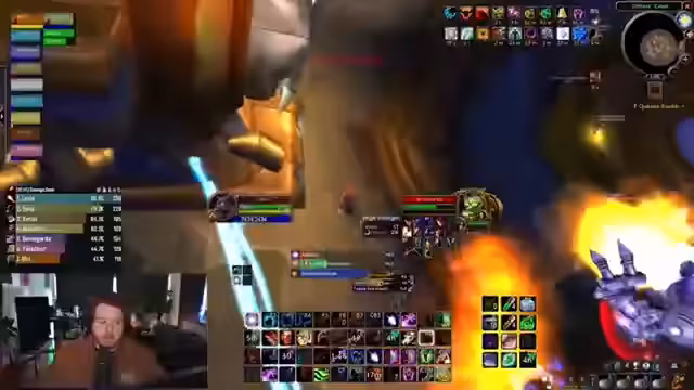 00:35:14Der Raid startet den ersten Versuch am Boss Thermaplug. Die Mechaniken werden teilweise umgesetzt, aber es kommt zu Fehlern. Die Bombe-Aktivierung funktioniert zunächst nicht reibungslos, und der Simon als Tank gerät unter Druck. In der zweiten Phase mit den Frost-Stacks kommt es zu einem Wipe, da die Heiler nicht schnell genug dispeln können und der Mana-Vorrat der Heiler nicht ausreicht. Der Streamer analysiert den Fehler für den nächsten Versuch.