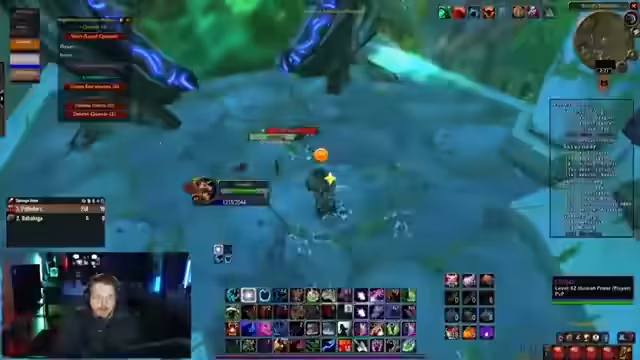 04:09:05Die Horde-Gruppe plant einen Angriff auf den Allianz-Boss am Strand. Es werden Geister genutzt, um sich schnell fortzubewegen und um nach dem Tod weiter an den Kämpfen teilzunehmen. Die Gruppe wird von mehreren Allianz-Gruppen konfrontiert, was zu chaotischen Kämpfen führt. Trotz fehlender Heiler wird versucht, Punkte für das Event zu sammeln. Nach dem PVP-Teil wird ein neues Questgebiet betreten und es wird ein epischer Hammer mit starken Stat-Boosts für Druiden gefunden, der ein Highlight des Streams ist.