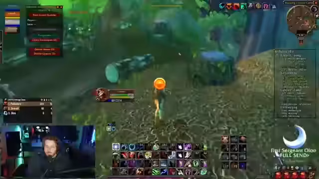 02:10:09Da es in ihrer aktuellen Zone zu wenig Gegner spawnen, wechselt die Gruppe die Position, um weiter jagen zu können. Sie beschließen, einen Full-Run zu machen, bei dem alle Quests abgegeben werden, ohne Items zu löschen. Gleichzeitig wird aufgerufen, anderen Spielern die Möglichkeit zu geben, sich der Gruppe anzuschließen, um ebenfalls XP und Ruf zu farmen.