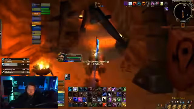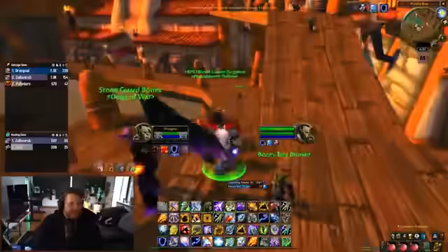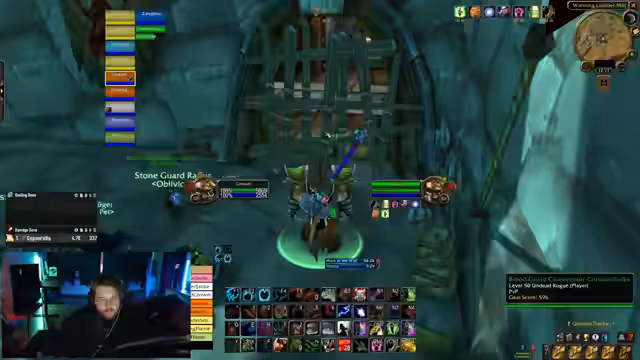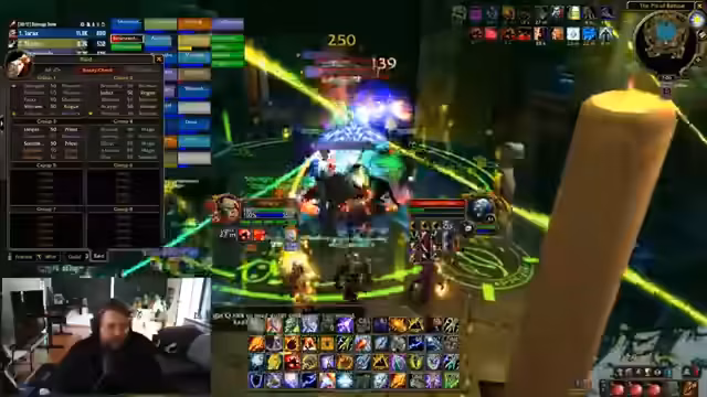 00:26:26Nachdem das Team vollständig ist, startet der Raid. Der Streamer organisiert das Betreten der Instanz und die Verteilung der World Buffs. Im ersten Raum werden Trash-Mobs bekämpft. Die Gruppe muss dabei auf besondere Mechaniken wie den Shackle der Priester und das Kiten von Mobs achten. Es kommt zu einer angespannten Situation, in der die Heiler und Kämpfer koordiniert agieren müssen, um die Mobs unter Kontrolle zu halten und Verluste zu vermeiden, während der Loot-Modus vorbereitet wird.