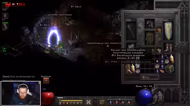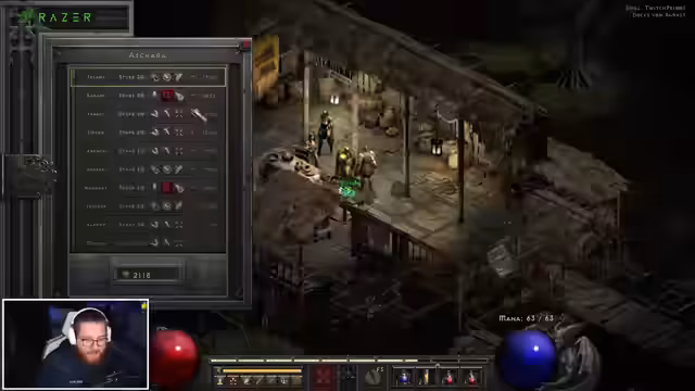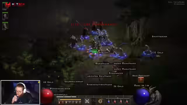 08:07:33Die Gruppe startet detailliert den dritten Akt von Diablo. Die Mission beginnt mit dem Finden von Kalims Auge in einer Spinne-Höhle. Dabei droppt ein Paladin-Zepter, das sofort genutzt wird. Es werden Strategien für das Inventarmanagement und der Umgang mit Begleitern erörtert.