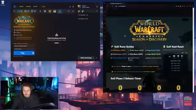 Der Start von Phase 3 in World of Warcraft ist holprig, da viele Spieler mit Serverproblemen zu kämpfen haben. Trotz der Schwierigkeiten werden erste Quests in Brackenwall erledigt und Dungeon-Pläne geschmiedet. Es gibt Diskussionen über Runen, Strategien für Raids und die Vorbereitung auf neue Herausforderungen. Auch Item-Optimierung und Talentkosten werden thematisiert.