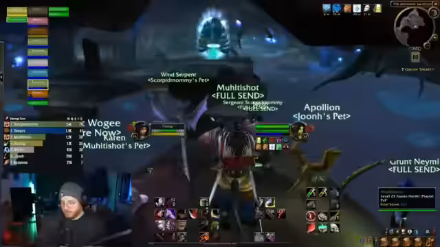 02:58:12Während des Bosskampfes gibt der Streamer präzise Anweisungen an seine Mitspieler. Er weist darauf hin, dass die Adds nicht angegriffen werden dürfen, da der Boss sonst Stacks erhält. Er organisiert den Taunt des Haustieres und schlägt vor, ein Pad zur Heilung zu benutzen. Die Kommunikation ist entscheidend, um den Boss ohne Wipe zu besiegen und die Drops sicherzustellen.