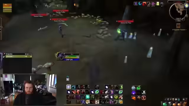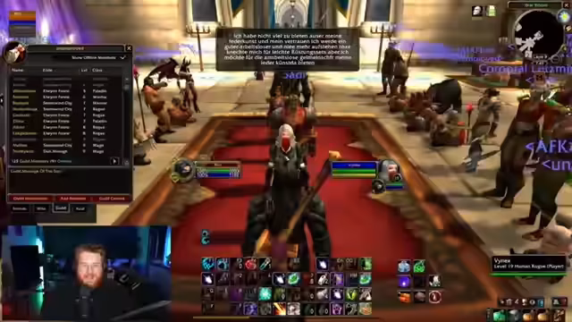 06:50:21Nachdem die Aufnahmetermine für die Gilde abgeschlossen sind, wechselt der Fokus auf den Beginn eines Raids in Blackfathom Deeps. Der Streamer und seine Gruppe haben Müsse, sich einen sicheren Weg zum Raidportal zu bahnen, da andere Spieler diese Stelle bewachen. Die Kommunikation ist vorsichtig, um ungewollte PvP-Konflikte zu vermeiden, während sich die Gruppe sammelt und auf den Start des Dungeons wartet.