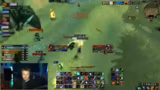 07:38:45Es wird der Unterschied zwischen WoW S.O.D. und Retail erläutert. S.O.D. wird als ein Retro-Spiel mit neuen Features im Stil von Classic Plus beschrieben. Das aktuelle Spiel gegen ein Team aus sechs Jägern wird als extrem herausfordernd und fast PvE-ähnlich empfunden. Die Kämpfe sind geprägt von vielen Haustieren (Pets) und erfordern eine strategische AOE-Anpassung.