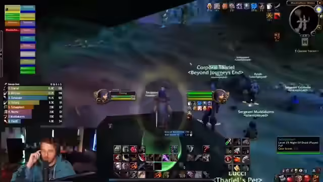 04:25:14Ein Spieler wird unerwartet aus der Instanz geworfen und ertrinkt. Dieser Vorfall hat einen ironischen Nebeneffekt: Der Spieler hätte seine XP-Verluste durch den Buff kompensieren können, aber durch den Unfall ohne den Buff gerettet worden zu sein. Die Situation wird als 'beste' beschrieben, da Dennis hier als MVP für die Rettung gilt. Der Fokus verlagert sich auf die Fortsetzung des Raids.