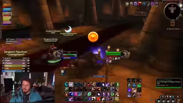 02:22:00Die Diskussion verlagert sich auf die effizienteste Methode zum Leveln nach Stufe 40. Es wird verglichen, ob der Dungeon Kathedrale oder Razorfen Downs eine schnellere Erfahrungspunkte-Abgabe bietet. Man kommt zum Schluss, dass ein Zonenwechsel und das Anpassen der Spezialisierung auf Fire-Spec für einen Druiden möglicherweise schneller wäre. Man plant daher, die im Inventar angesammelten Quests grün zu werden, bevor man sich wieder dem Dungeon-Grinding widmet.
