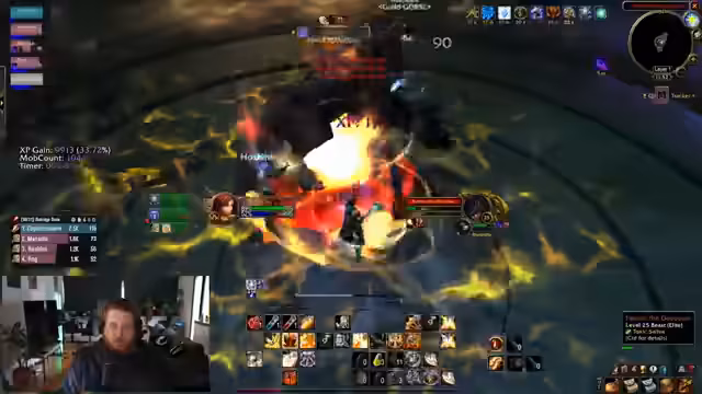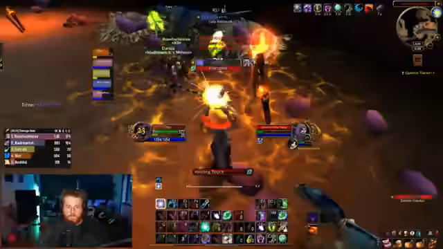 20:09:30Ein plötzlicher Internetausfall beim Streamer führt zu dessen_disconnect während eines Bosskampfes und zum Tod des Charakters. Trotz des technischen Problems wird der weitere Bosskampf fortgesetzt. Die Kommunikation über die Raidmechaniken wie Totems und das Management von Dots (Damage over Time) wird besprochen. Es gibt Diskussionen über die Fähigkeiten der Klasse, wie das Entfernen von Fluchen, das Aus der Formwechsel-Form des Druiden erforderlich macht.