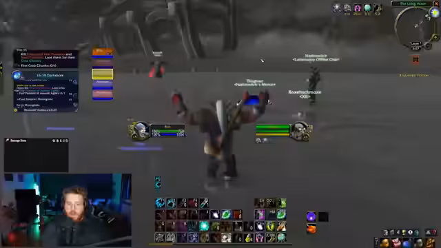 01:34:19Es wird ein Problem angesprochen, bei dem Spieler einen Boss für eine Quest solo farmen, indem sie sich durchsterben und sich am Ende beleben, um den Quest-Belohnungsgegenstand von einer Gruppe, die die Arbeit gemacht hat, zu stehlen. Ein spezifisches Beispiel ist der Solo-Farming durch einen Rogue, der die Hose aus dem Dungeon 'Wailing Caverns' farmte. Dies wird als sehr wild und potenziell unethisch eingestuft.