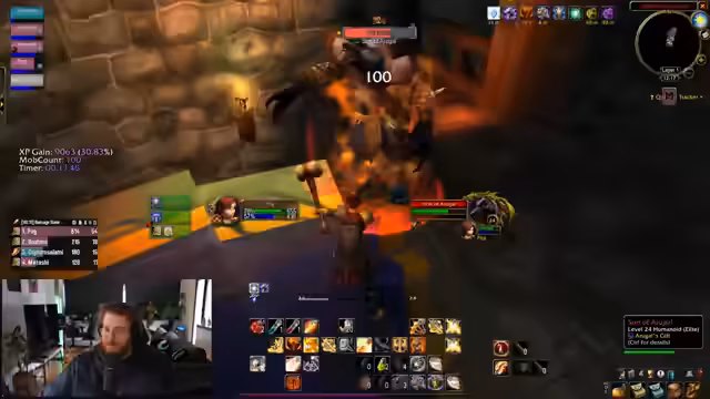 04:02:46Der Streamer beschreibt seine Erfahrungen mit Raids und Dungeon-Gruppen. Zwei Hunter seien für einen leichten Raid-Verlauf unerlässlich, da sie über 130 DPS bringen. Im Dungeon gibt es technische und strategische Herausforderungen; ein Tank bittet um Überheilung, um Mana zu bekommen. Es kommt zu einem "gottlosen Pull", der zu einem Wipe führt. Die Gruppe beschließt, den Raidbereich zu resetten, und überlegt, ob bestimmte Buffs wie "Bubble" oder "Nova" eingesetzt werden sollten, um den Schaden zu reduzieren.