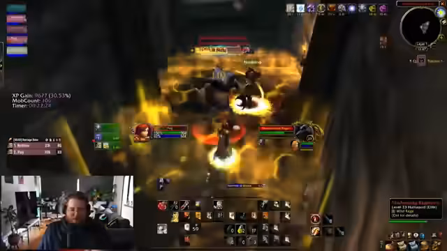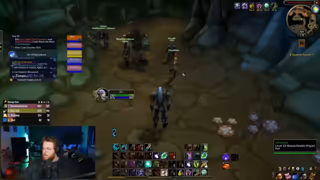 16:20:27Es kommt zu unvorhergesehenen PvP-Konfrontationen auf dem Weg zum nächsten Ziel. Ein feindlicher Schurke wird getötet, wobei der Streamer seine Taktik preist: Er konnte den Schurken trotz Unsichtbarkeit ausmachen und mit speziellen Fähigkeiten ausschalten. Der Streamer zeigt sich überlegen und merkt an, dass es eine 'One-Hitter'-Situation war. Auch ein feindlicher Mage wird getötet, was dem Team zusätzliches Gold bringt.