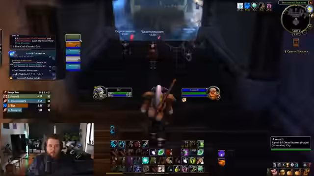16:42:26Während der Reise zum Dungeon-Eingang gerät das Team mehrfach in PvP-Konfrontationen mit Allianzspielern. Besonders ein Schurke wird zur ständigen Bedrohung. Dies führt zu mehreren Toden und erheblichen Zeitverzögerungen. Die Route durch das Gebiet erweist sich als gefährlicher 'Todespfad', da immer wieder feindliche Gruppen spawnen und der Zugang zum Dungeon durch Kämpfe blockiert wird. Die Gruppe muss taktisch vorgehen, um den Feinden auszuweichen.