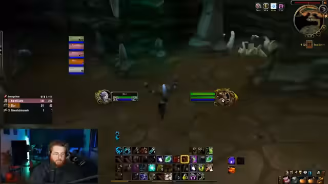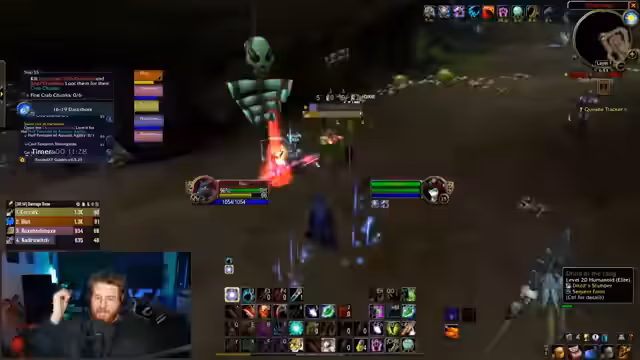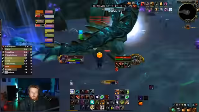 20:03:46Die Gruppe startet den Kampf gegen den Murloc-Boss. Die erste Phase erfordert es, dem Boss Schaden zuzufügen, während man den Schatten-Murlocs ausweicht. Nach einiger Zeit heilt sich der Boss voll und es geht in die nächste Phase, in der man bewegen muss. Hierbei verliert jemand dasaggro, was zu Problemen führt. Die Gruppe diskutiert über ein mögliches Item-Drop und beschwert sich über einen Bug bei der Venom-Fähigkeit, der den Schaden beeinflusst.