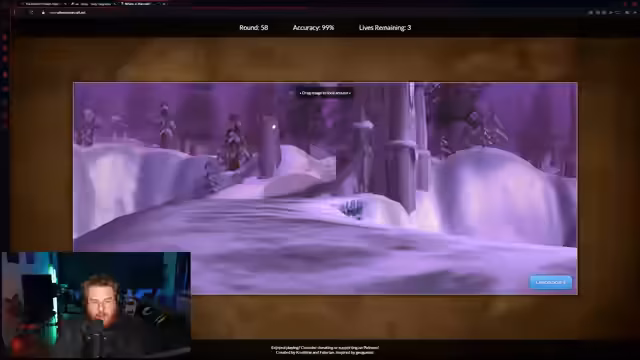 14:17:17Während des Serverausfalls wurde ein Geo-Gässer in World of Warcraft durchgeführt, bei dem der Streamer verschiedene Orte der Welt erraten musste. Der Fokus lag dabei auf selten besuchten oder schwierig zu identifizierenden Orten wie Türmen, Höhlen und Gebieten, die selbst für erfahrene Spieler unbekannt sein können. Der Streamer betonte, dass die Spielwelt durch wiederkehrende Texturen oft ähnlich aussieht und dies das Erraten erschwert. Die Server waren zu Beginn dieses Segments nach technischen Problemen weiterhin offline.